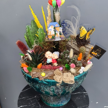 Tasarım Teraryum Büyük W Tasarım 'da kullanılan çiçek ve aksesuarlar stok durumuna göre farklılık gösterilebilir.